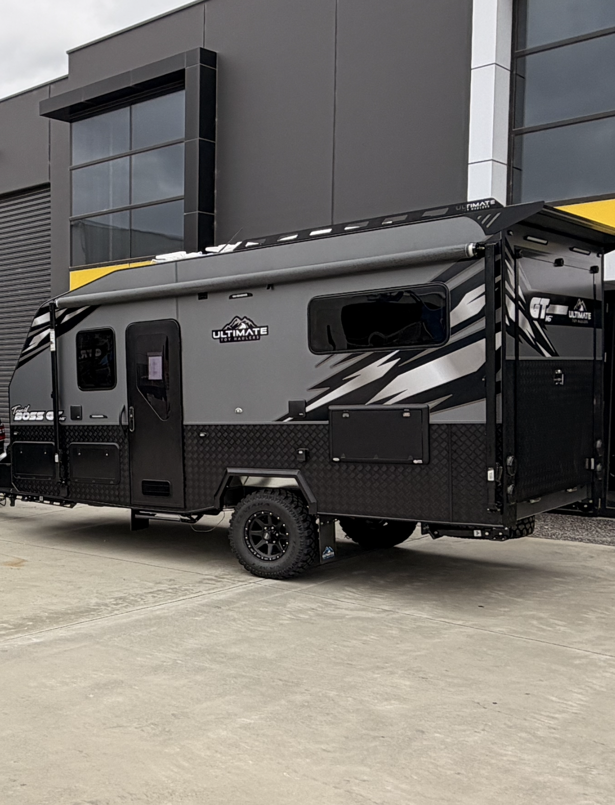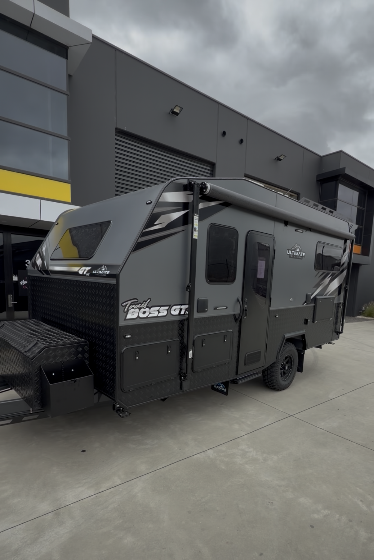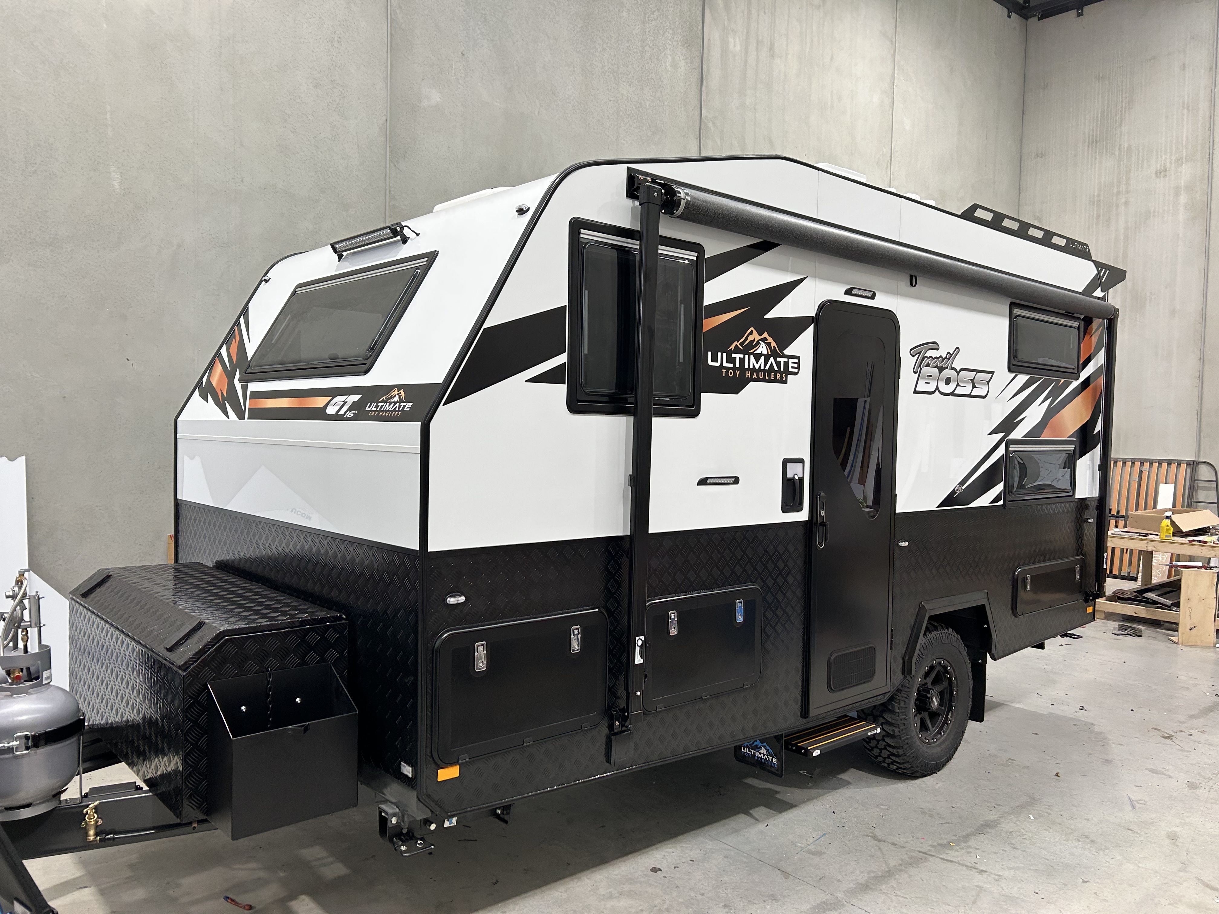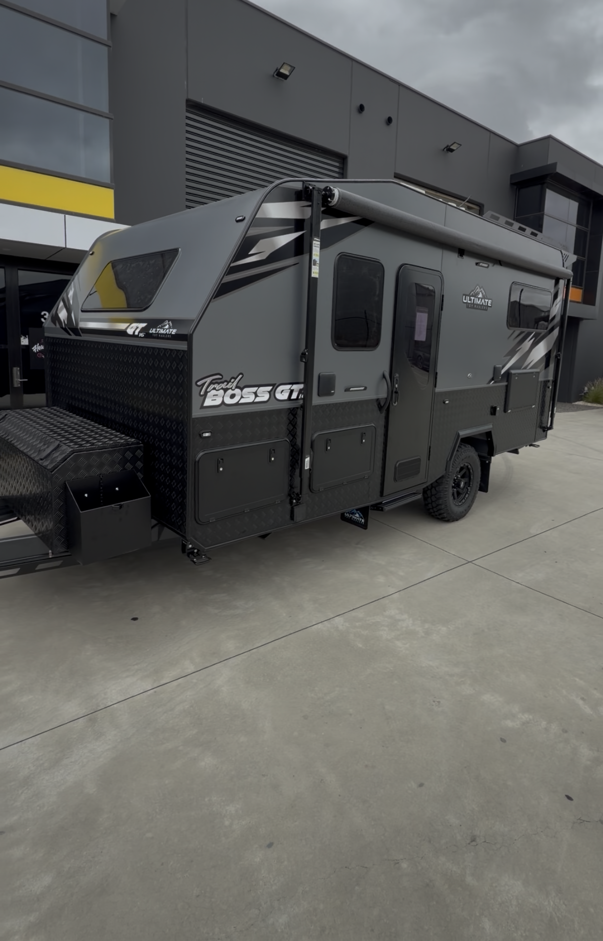 Trail Boss GT 16'The Trail Boss GT 16' packs a punch for a mid-size Toy Hauler. It boasts both luxury and style offering all of the creature comforts of the larger Toy Haulers which makes it one of our most popular models in our range. The Aluminium Box Frame provides a lightweight yet robust construction and comes standard with independent off-road suspension made in Australia. (Sleeps 4-6 depending on inclusions). Warranty